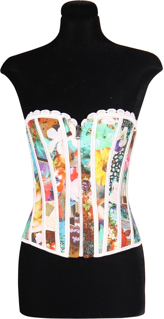 Een kleurrijk carnavals korset voor dames.