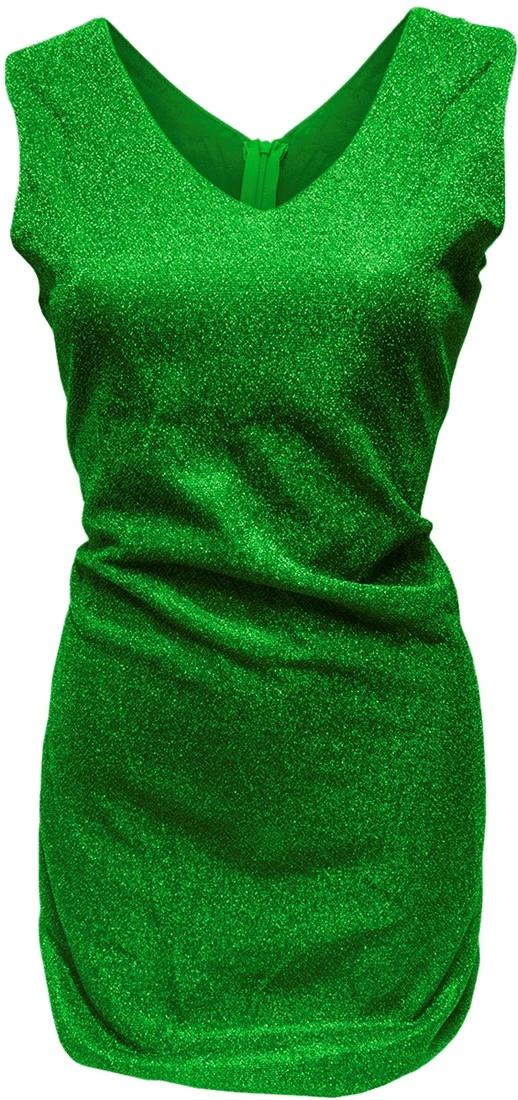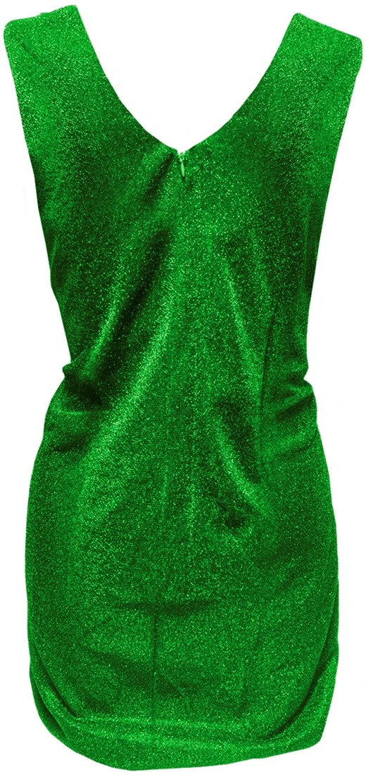 Een mooi groen jurkje met glitterstof. Leuk om te dragen naar feestjes, zoals bijvoorbeeld een glitter of glamour feest.