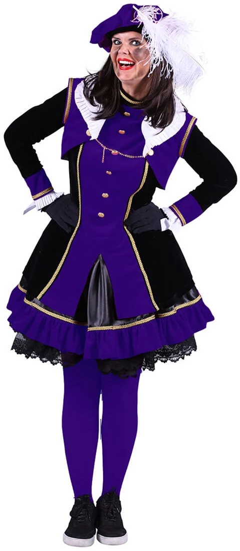 Een mooi zwart/paars pietenpak voor dames. Een leuk jurkje om aan te hebben tijdens de intocht of pakjesavonden en dergelijke.