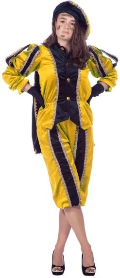 Een prachtig dames pietenkostuum in het zwart met pink. Het pak is van hoogwaardige kwaliteit, en is afgewerkt met goudband. Ideaal voor de intocht van Sinterklaas of voor pakjesavond uiteraard!