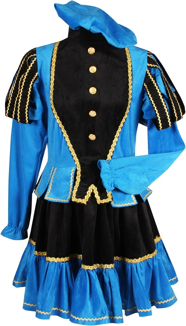 Erg prachtig turquoise pietenpak voor dames (inclusief turquoise baret (zonder veren))! Dit gave pietenpak is gemaakt van polyester fluweel, waardoor het kostuum goed zit en fijn aanvoelt. Naast deze turquoise variant zijn ook andere mooie kleuren verkrijgbaar. Let op: Het kostuum valt groot uit.