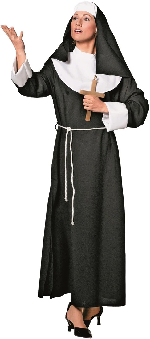 Je bent niet meteen een heilig boontje als je dit Nonnen kostuum aantrekt.Toch is het nooit te laat om je te bekeren, nietwaar? Maar nu eerst feestvieren!