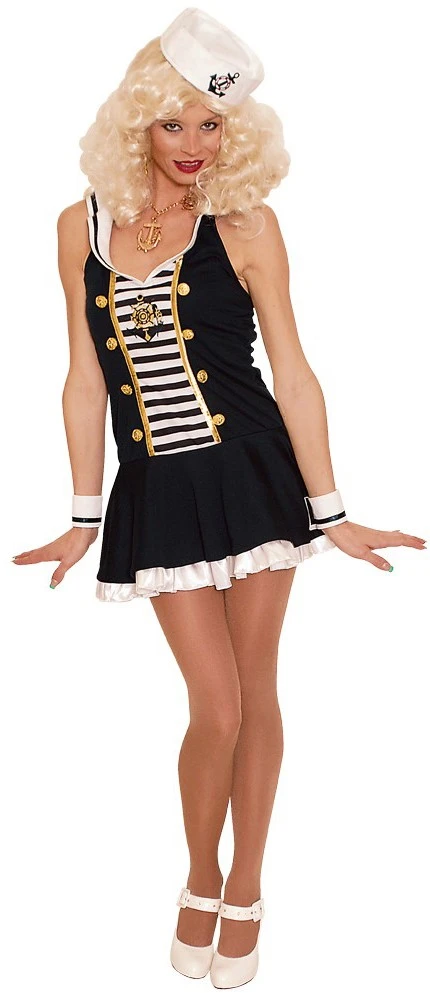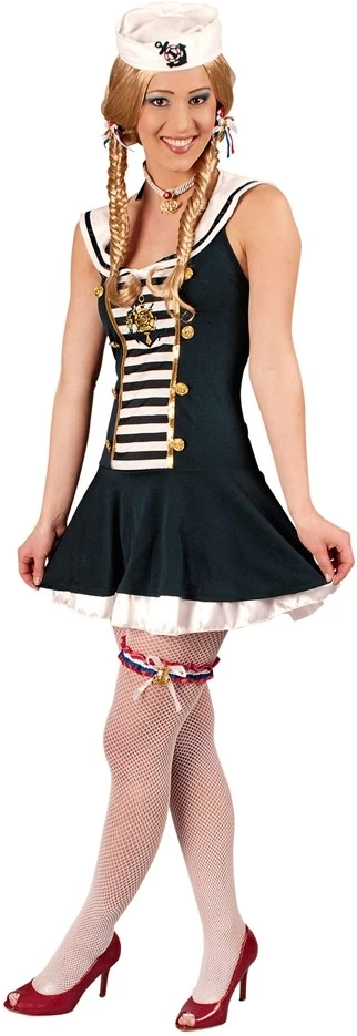 Details: Halter jurkje met matrozen kraag en goud kleurige knopen op de voorkant