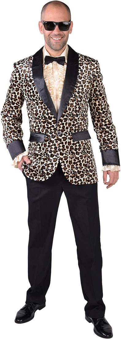 Deze heren colbert met panter patroon is perfect voor jouw pimp outfit!