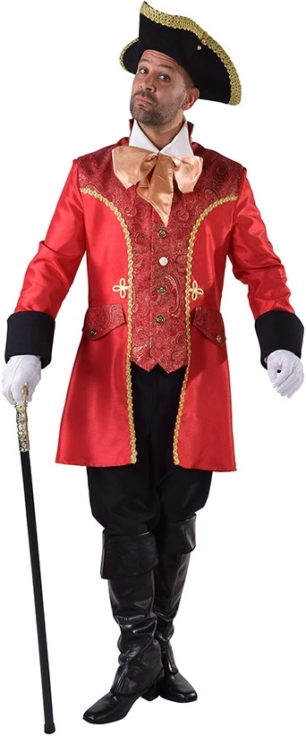 Details jas: brokaat motief op de borst en zakken. De omslag van de mouwen zijn zwart en de jas is afgewerkt met goud band