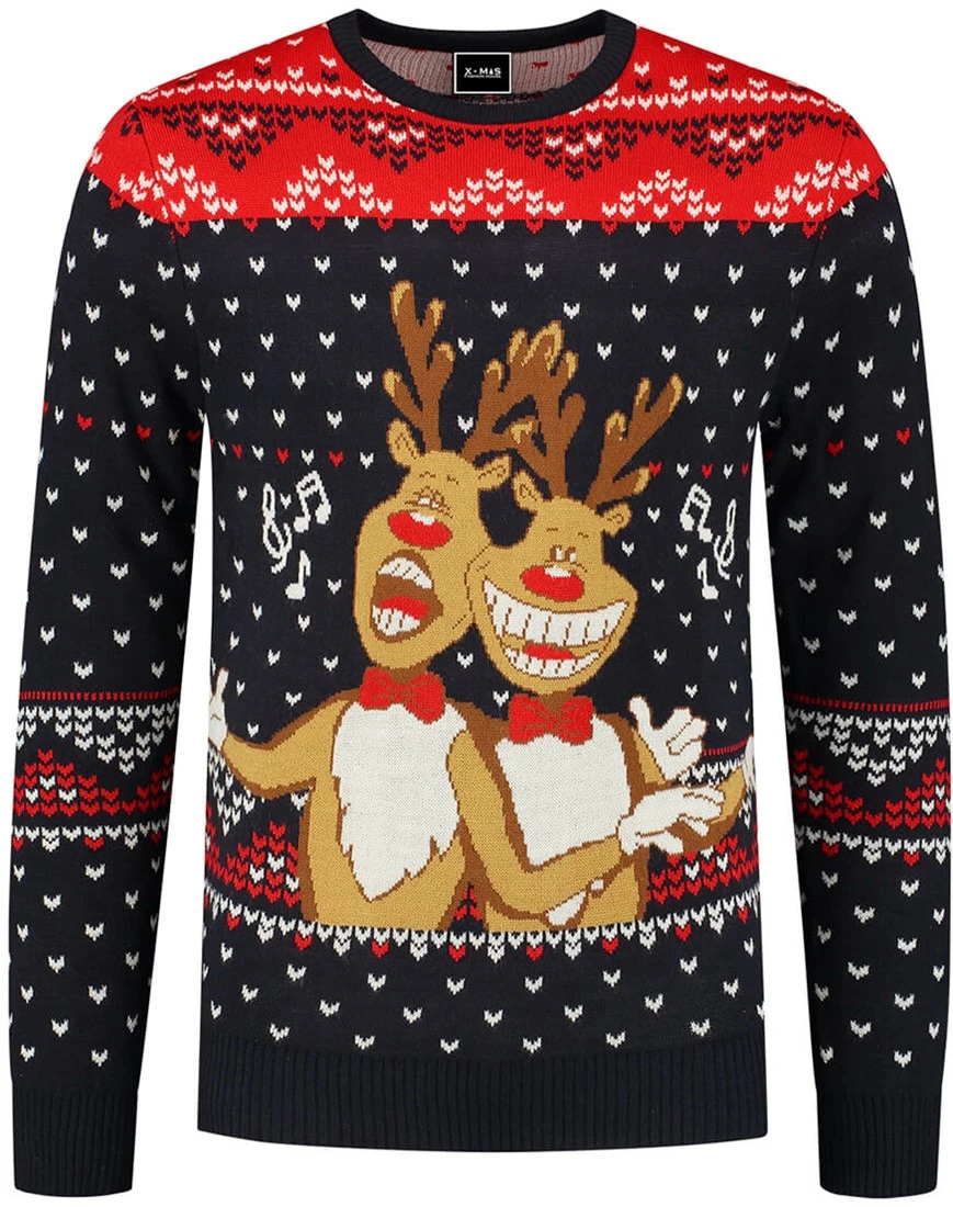 Je kent Dasher en Dancer, Prancer en Vixen, Comet en Cupid, Donner and Blitzen… Maar welke is het meest beroemde rendier van allemaal? Precies Rudoph, het rendier met de rode neus, nee dit is niet Rudoph maar oh wat is het een leuke kersttrui!