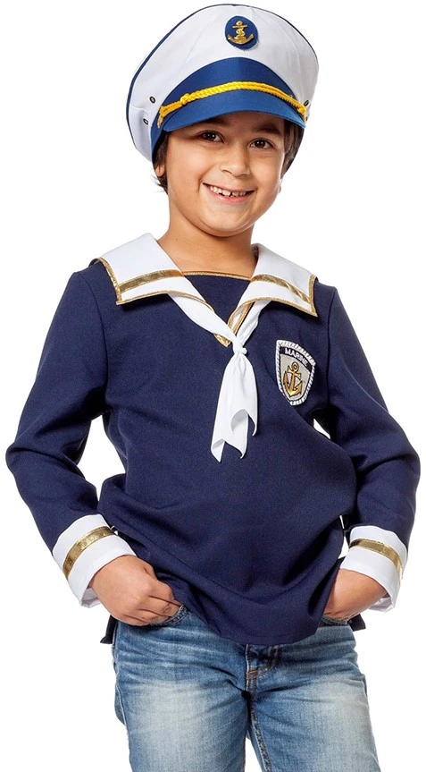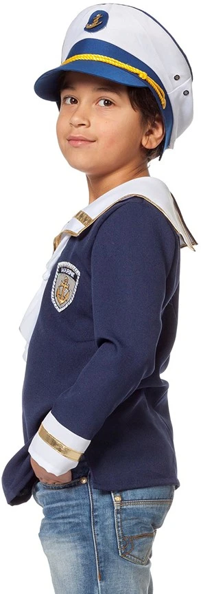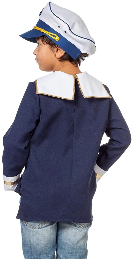 Details: goudkleurige randen langs de kraag en uiteinden van de mouwen, het witte sjaaltje zit aan het shirt vast