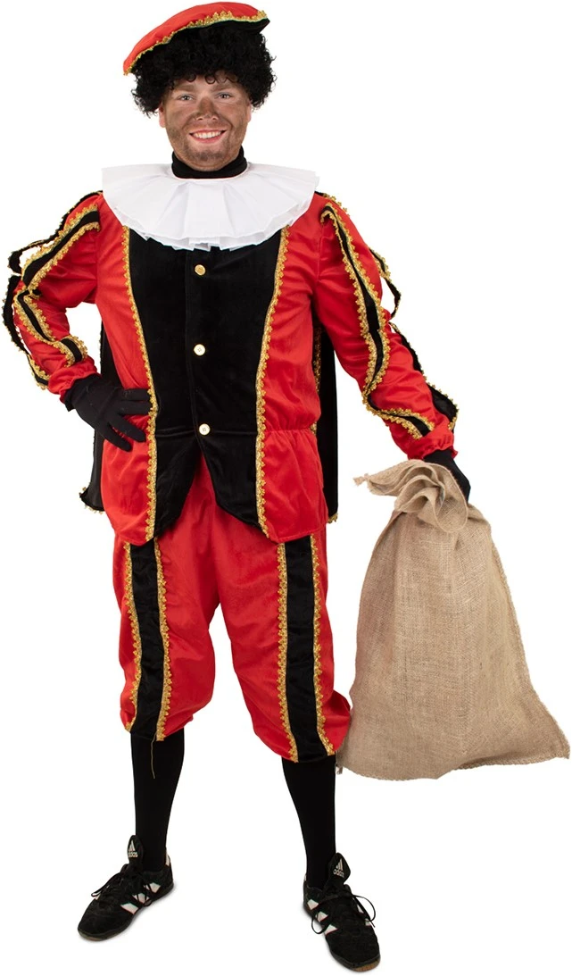 Een mooi pluche pieten kostuum, ook om buiten aan te hebben.