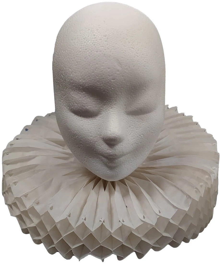 Deze witte harmonica kraag voor echte pieten is te sluiten met een strikje.