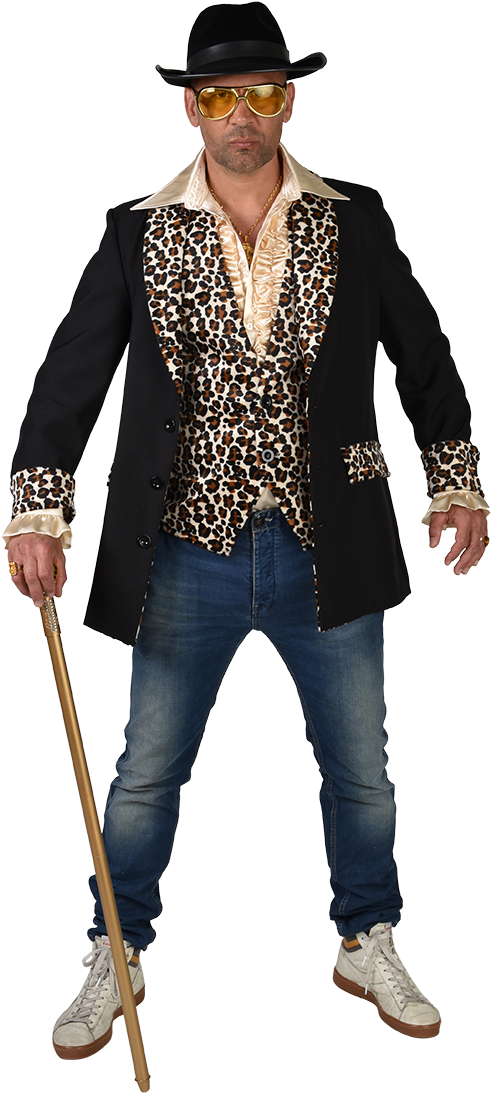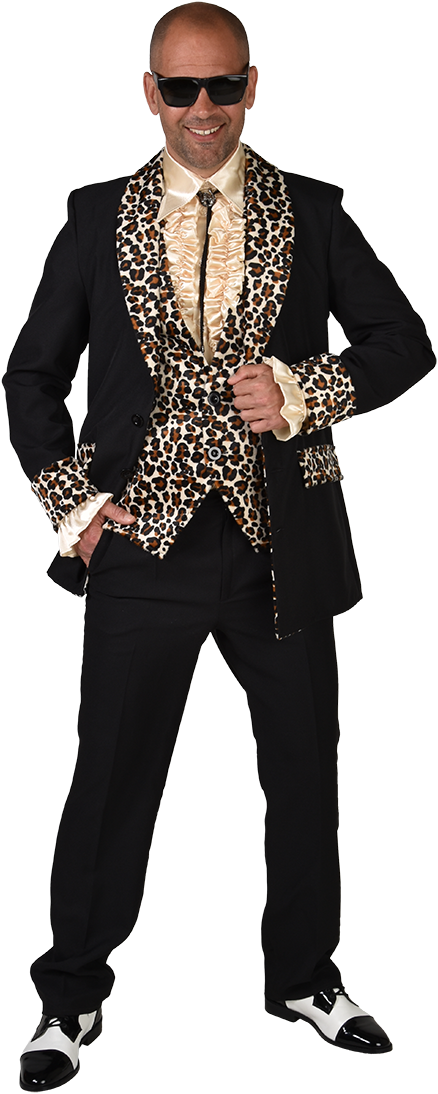 Patroon: effen zwart en op de revers, zakken en uiteinde van de mouwen een panter print