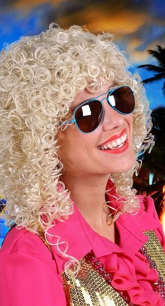 Grote afropruik Kimberly luxe in de kleur blond voor een Eighties of Seventies disco feest en geschikt voor volwassenen. De pruik is verstelbaar voor een goede pasvorm en gemaakt van kanekalon fiber (hoogwaardig en realistische kwaliteit). In meerdere kleuren verkrijgbaar.