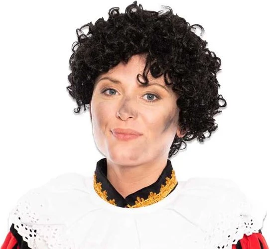 Mooie zwarte pietenpruik Black Jack luxe gemaakt van kanekalon.