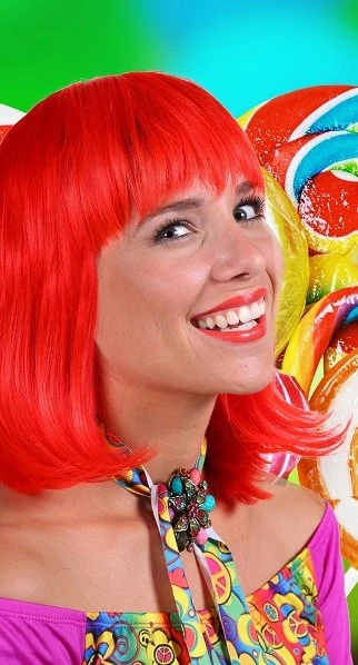 Deze halflange boblijn pruik Samantha Luxe in de kleur rood is voor de dames. Halflang model met pony om bijvoorbeeld uw hippie of disco outfit compleet te maken. De pruik is verstelbaar voor een goede pasvorm en gemaakt van kanekalon fiber (hoogwaardig en realistische kwaliteit). In meerdere kleuren verkrijgbaar.
