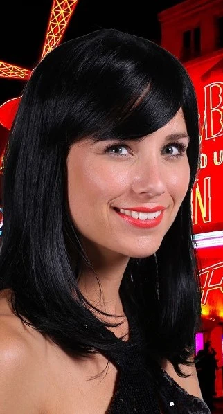 Lange zwarte damespruik Selina Luxe met een pony. Staat fantastisch bij bijvoorbeeld een kostuum met het thema burlesque & charleston! De pruik is verstelbaar voor een goede pasvorm en gemaakt van kanekalon fiber (hoogwaardig en realistische kwaliteit). In meerdere kleuren verkrijgbaar.