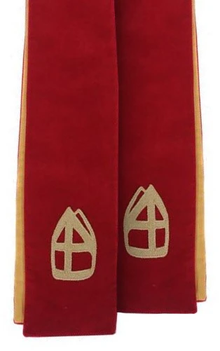 Een mooie stola (sjaal) voor Sinterklaas met een gouden afbeelding van de mijter erop.