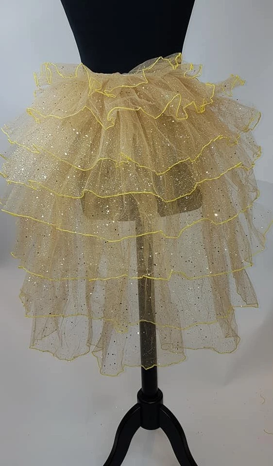 Met dit burlesque rokje in de kleur goud en vrolijke glitters val jij wel op tussen al dat geglitter op een glitterfeestje! Het vrolijke rokje is makkelijk te dragen en ziet er vrolijk uit!