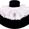 Details: er zit een veer op en is afgezet met een rand van goud galon. De barret heeft een satijn look